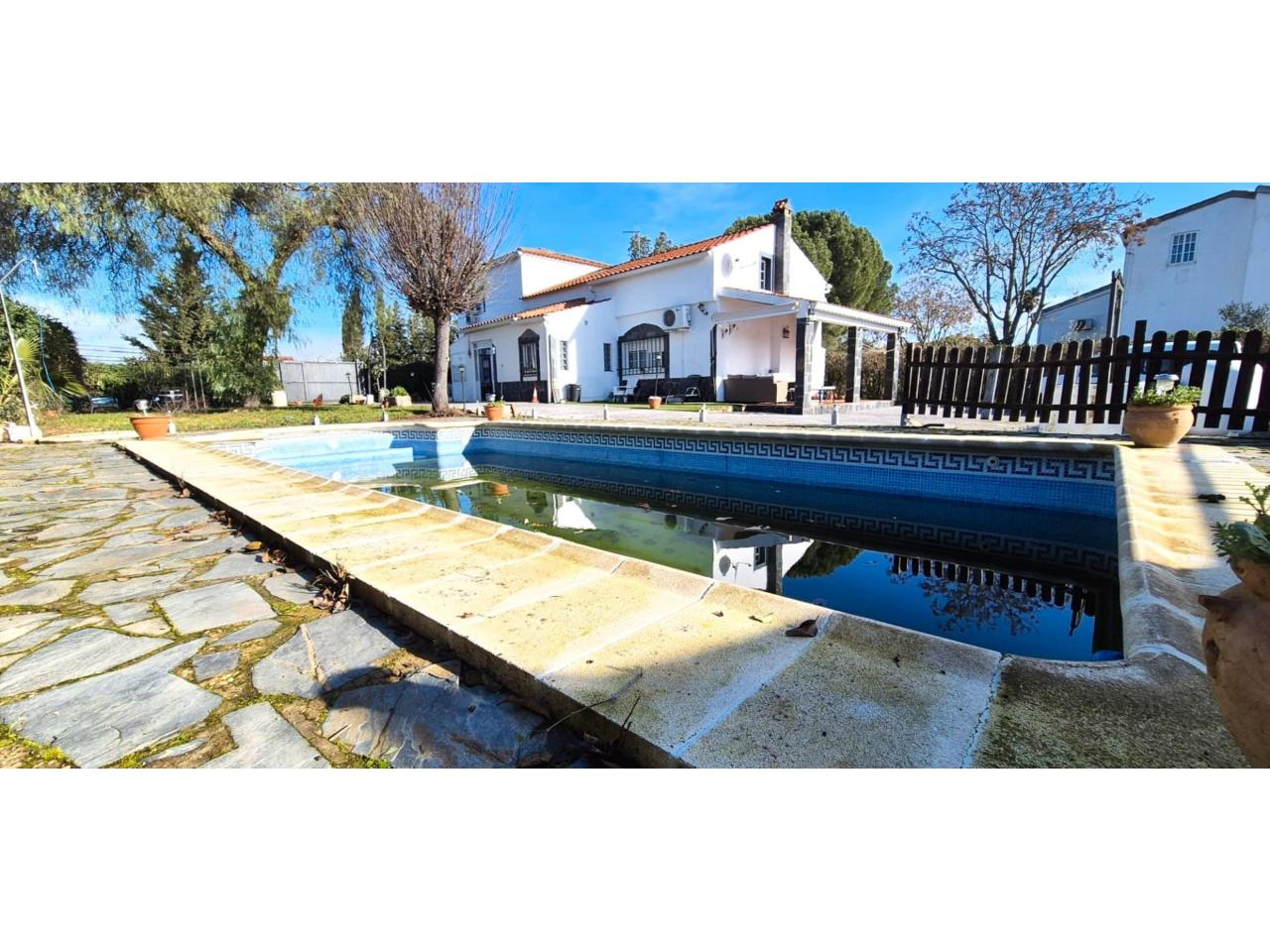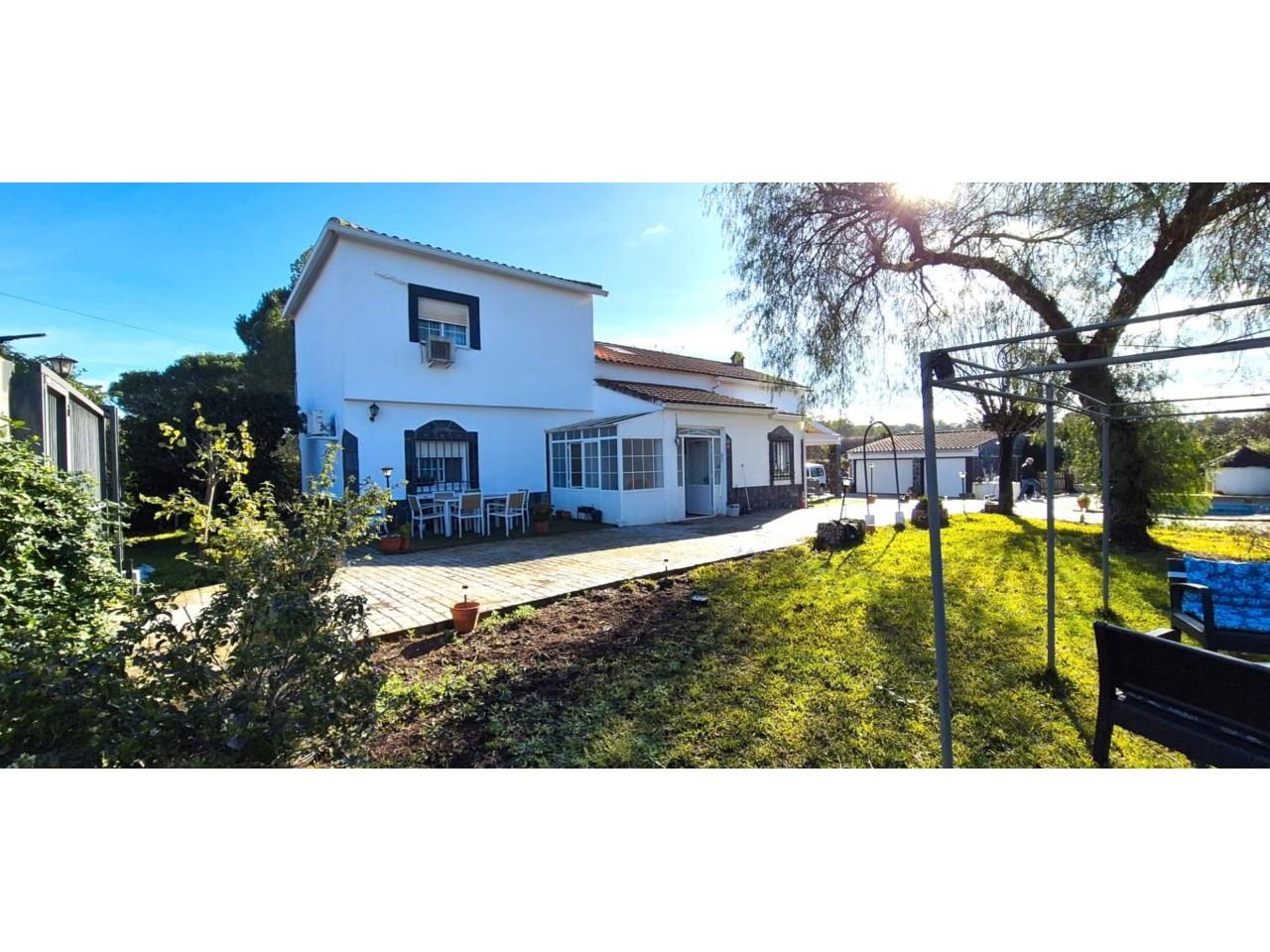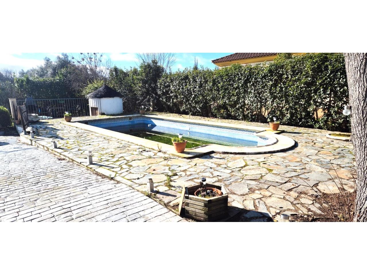 DescripciónREF 7392 MAGNÍFICO CHALET EN LOS LEBRATOS Te vamos a mostrar esta gran ocasión, que seguramente se conformará en tu NUEVO HOGAR. Se entrega semiamueblado y con todas la maquinaria para su mantenimiento, mula mecánica, desbrozadora, cortacesped, etc, valorados en mas de 4000€. A escasamente 3 minutos de Badajoz, mas cerca que las Vaguadas, y en una preciosa parcela de 2656m2 se halla construido esta gran Chalet, en dos plantas y que nos muestra: En la planta baja 3 dormitorios, el de matrimonio con dos armarios grandes empotrados y cuarto de baño en suite con ducha y mampara. Contamos con otro cuarto de baño completo mas, cocina office y gran salón con chimenea. En la planta superior se ubican 3 dormitorios mas, dos de ellos con grandes armarios empotrados y una gran buhardilla forrada de madera de usos múltiples. La casa dispone de un precioso porche y diversas zonas de descanso a su alrededor. Una gran piscina nos hará las delicias del verano. Disponemos también de una gran cochera con dos entradas diferentes para dos vehículos y nave de aperos en la misma edificación y cuarto de baño para dar servicio a la piscina. Ventanas climalit, calefacción por radiadores de gas y splits en diferentes estancias. En la parte trasera de la parcela se sitúa el huerto, gallinero y preciosos arboles.! Para ayuda en las labores propias de este tipo de inmueble, se pone a disposición del nuevo comprador, una furgoneta Kangoo y una moto de 125cc valoradas en mas de 4.500€. NO DEJES PASAR MAS TIEMPO, ES HORA DE HACER TUS SUEÑOS REALIDAD!